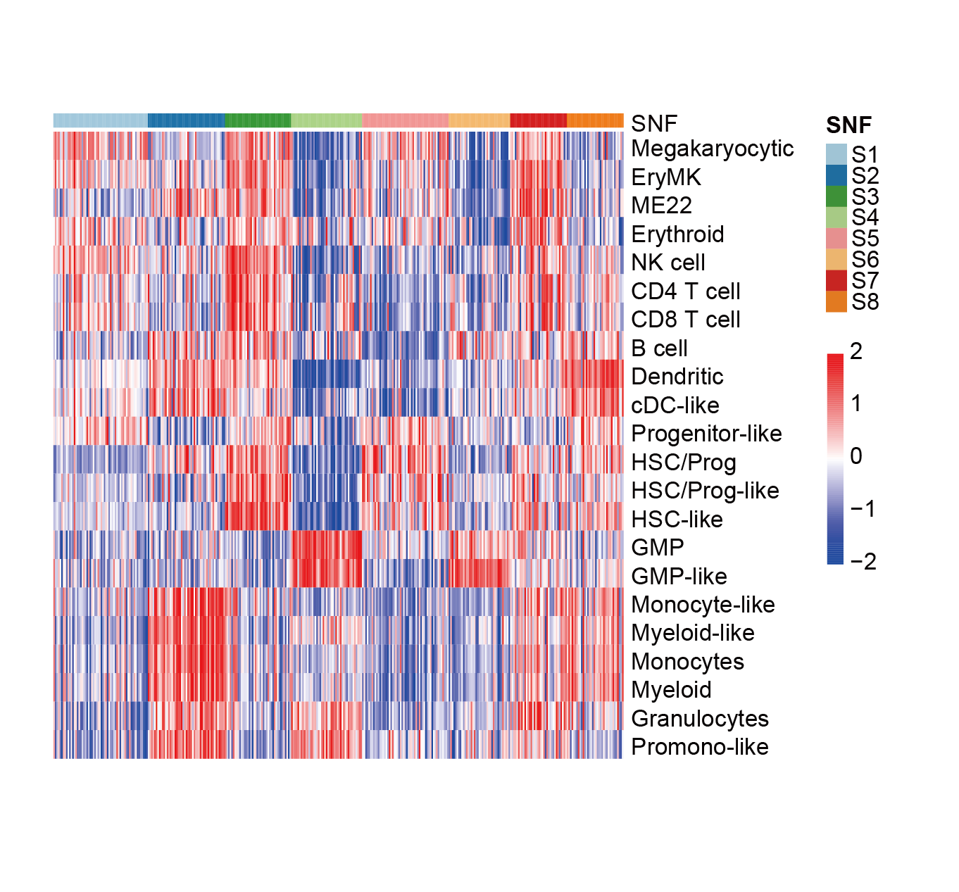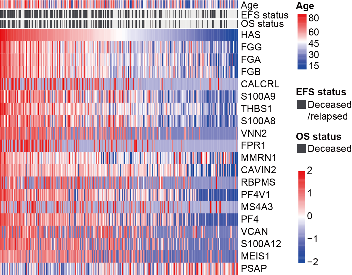 expression_df <- expression_df[, c('ZXSL.MK.other','PF4','ZNF16','MS4A3','VCAN','FPR1','VNN2','S100A12','S100A8','S100A9','CALCRL','MEIS1','RBPMS','TAL1','THBS1','NRIP1','MMRN1')]